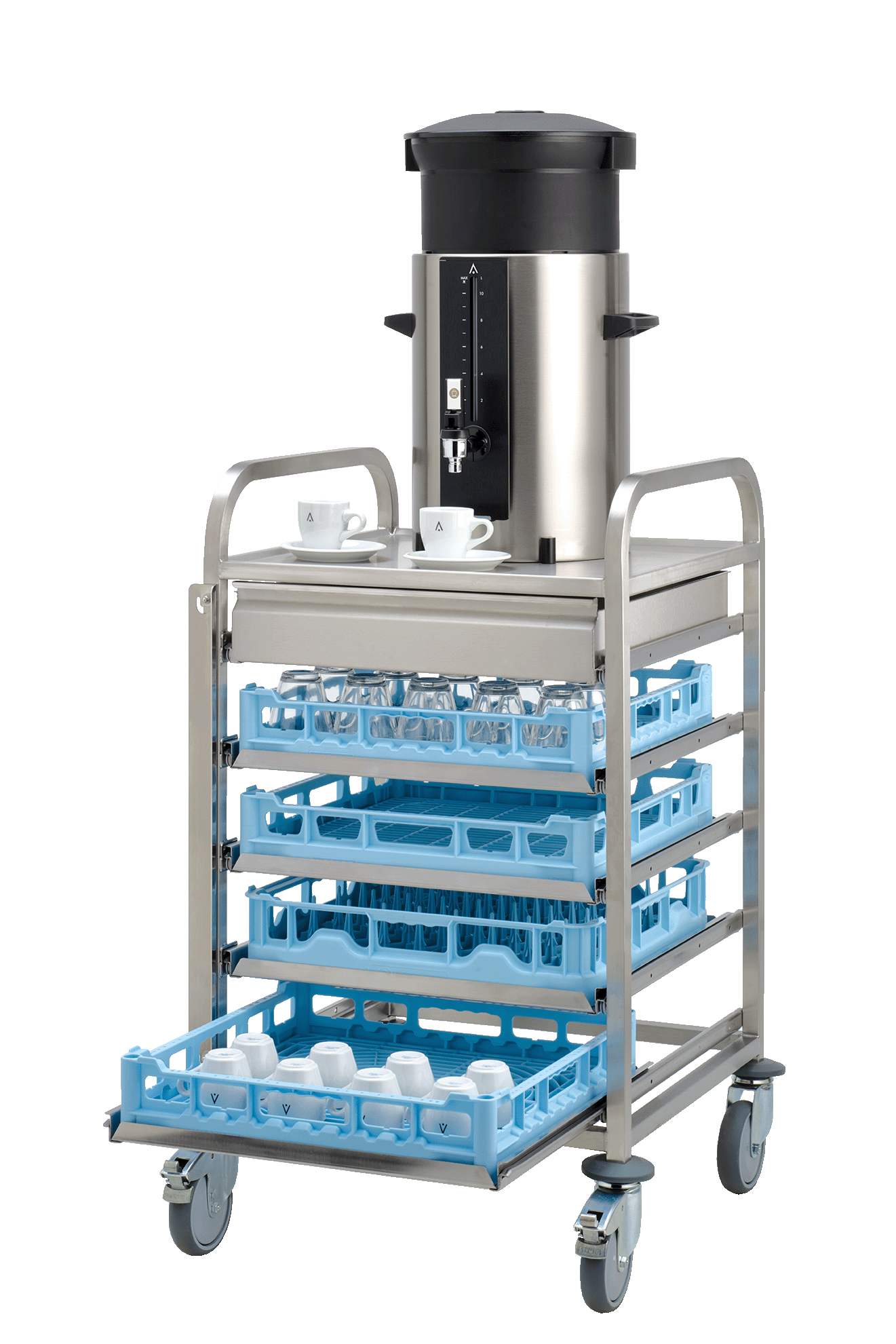 Serveringsvagnar från Animo är gjorda för många års problemfri användning. De rör sig mjukt och tyst framåt, även i hissar och trånga passager. I samband med detta kan de ta mycket stryk. De är lätta att rengöra och tar liten plats. Dessutom finns de i exakt den version som passar din situation. På varje avdelning i vårdhemmet, i varje flygel i konferenscentret, upp till översta våningen i kontorskomplexet … Animo serveringsvagnar för kaffe kommer överallt.